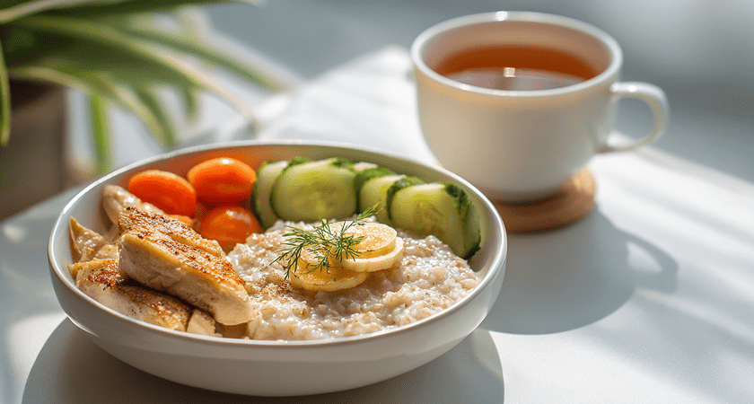 Пример меню на день при гастрите с повышенной кислотностью, сбалансированного и безопасного для слизистой желудка:
