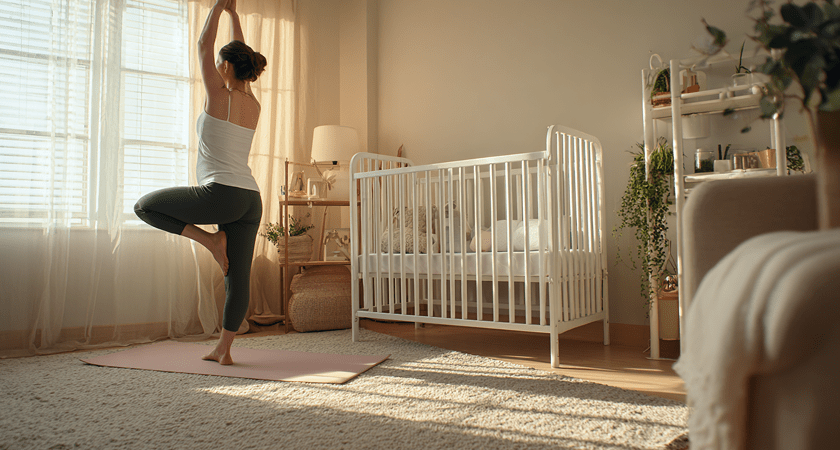 Физическая активность также играет важную роль, но начинать её нужно мягко и постепенно. В первые недели подойдут дыхательные практики, лёгкая растяжка и специальные послеродовые упражнения для укрепления мышц таза и спины. Позже можно подключать короткие тренировки дома: йогу, пилатес, ходьбу, домашние комплексы на 10–20 минут. Главное правило — никаких упражнений, вызывающих боль или дискомфорт.
